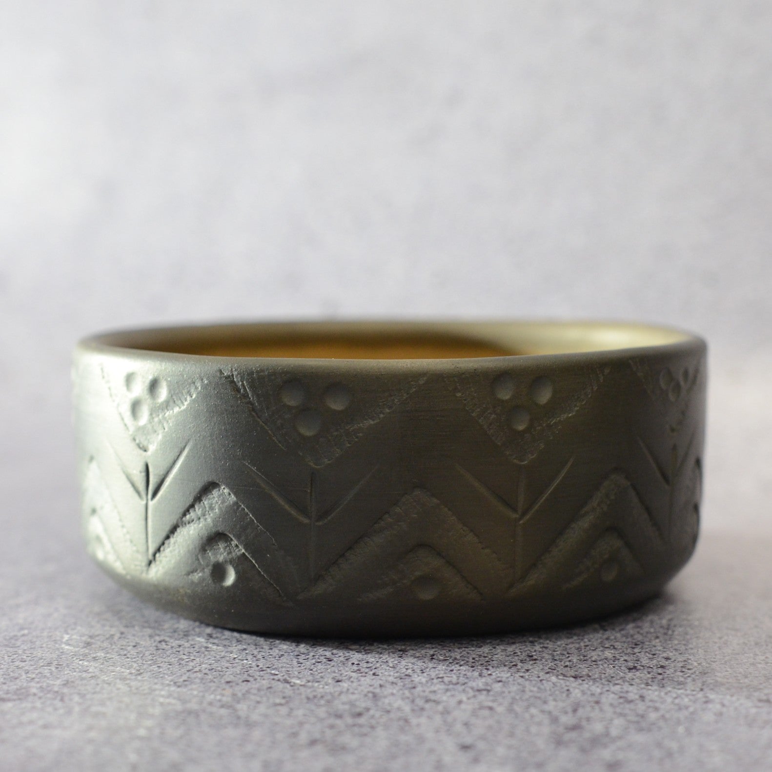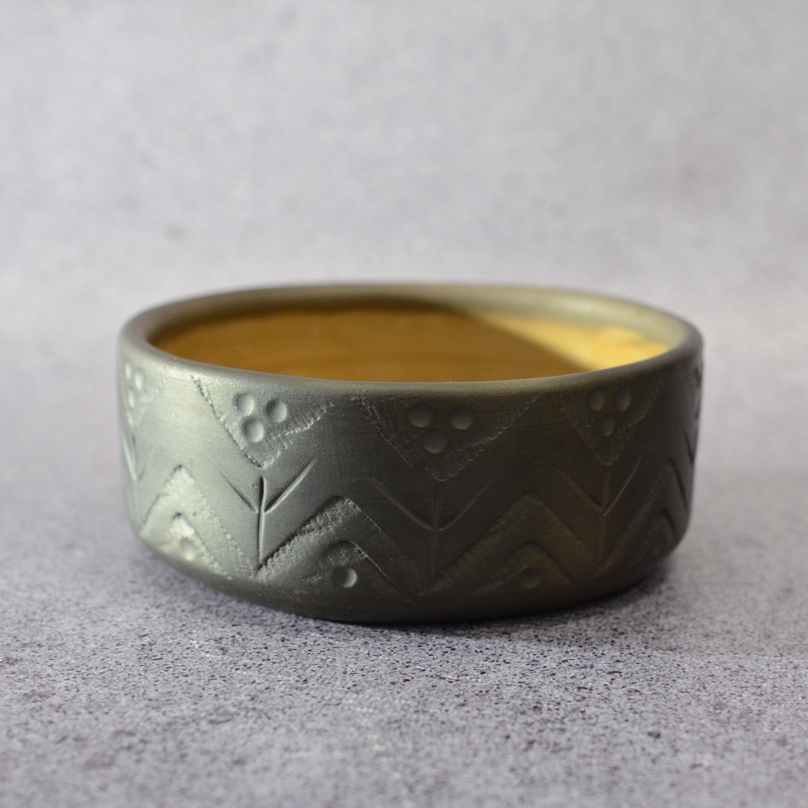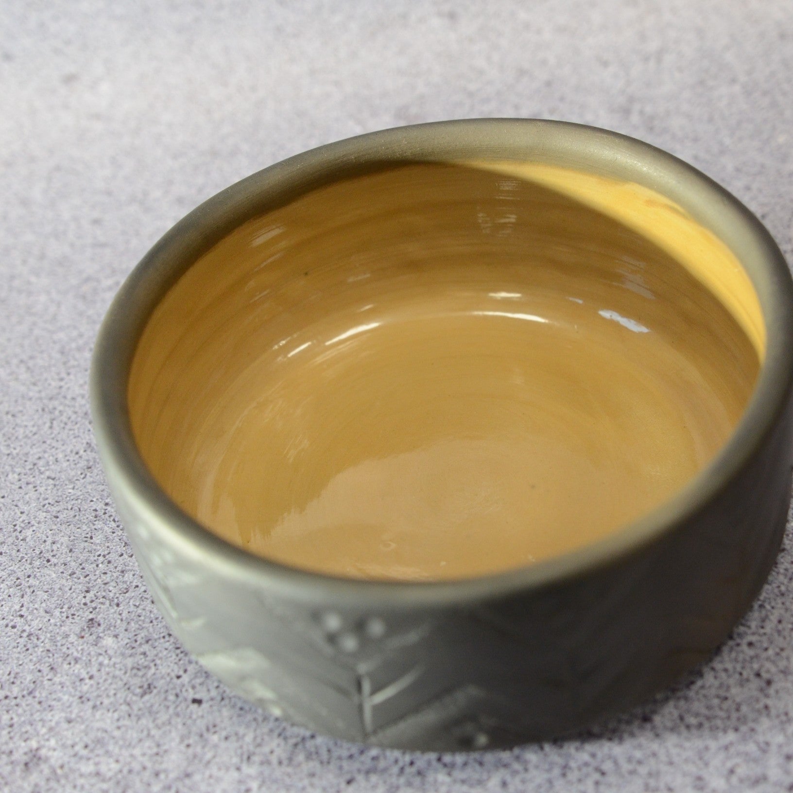 Svēpētā keramika, glazūra. Diametrs 16 cm, augstums 6,5 cm.
