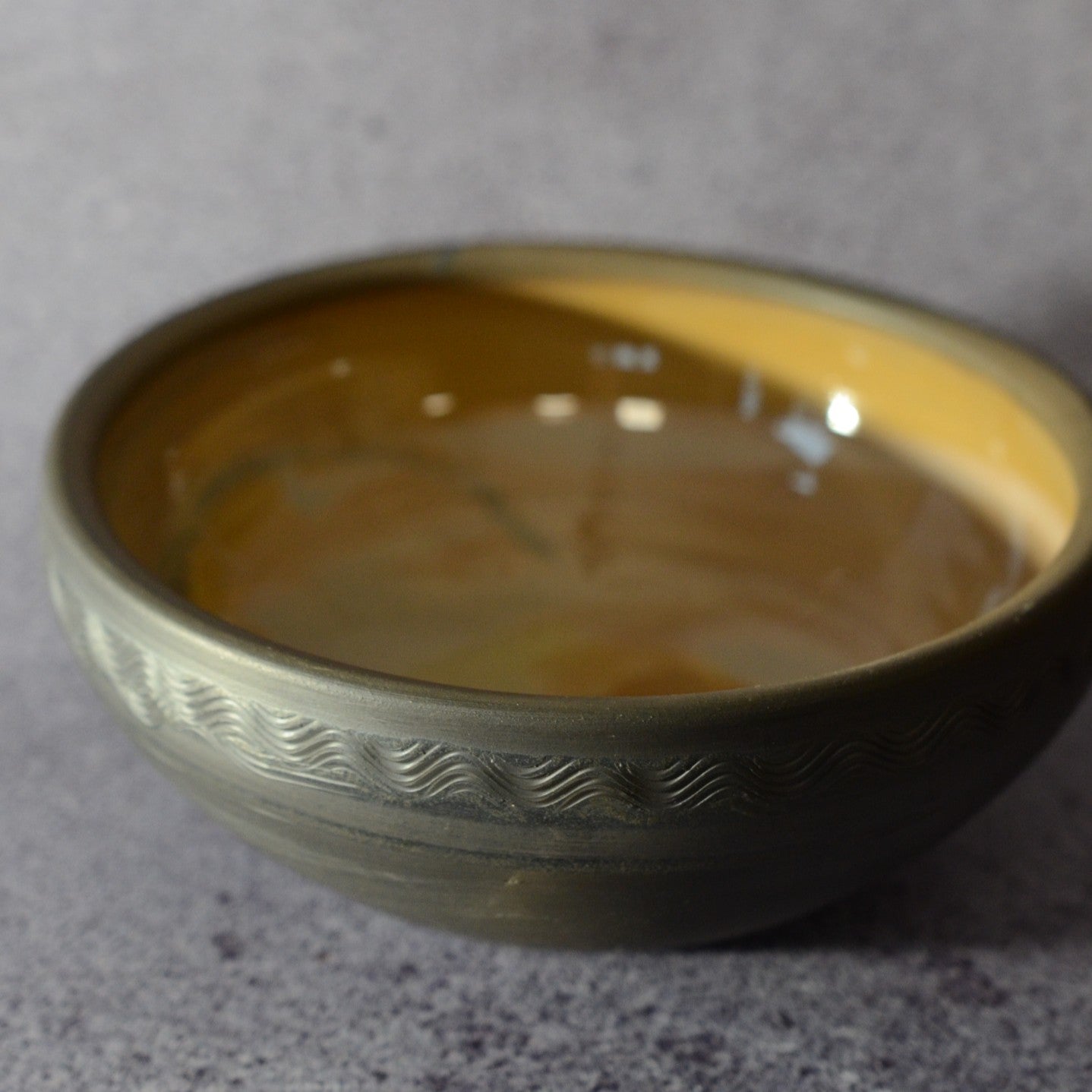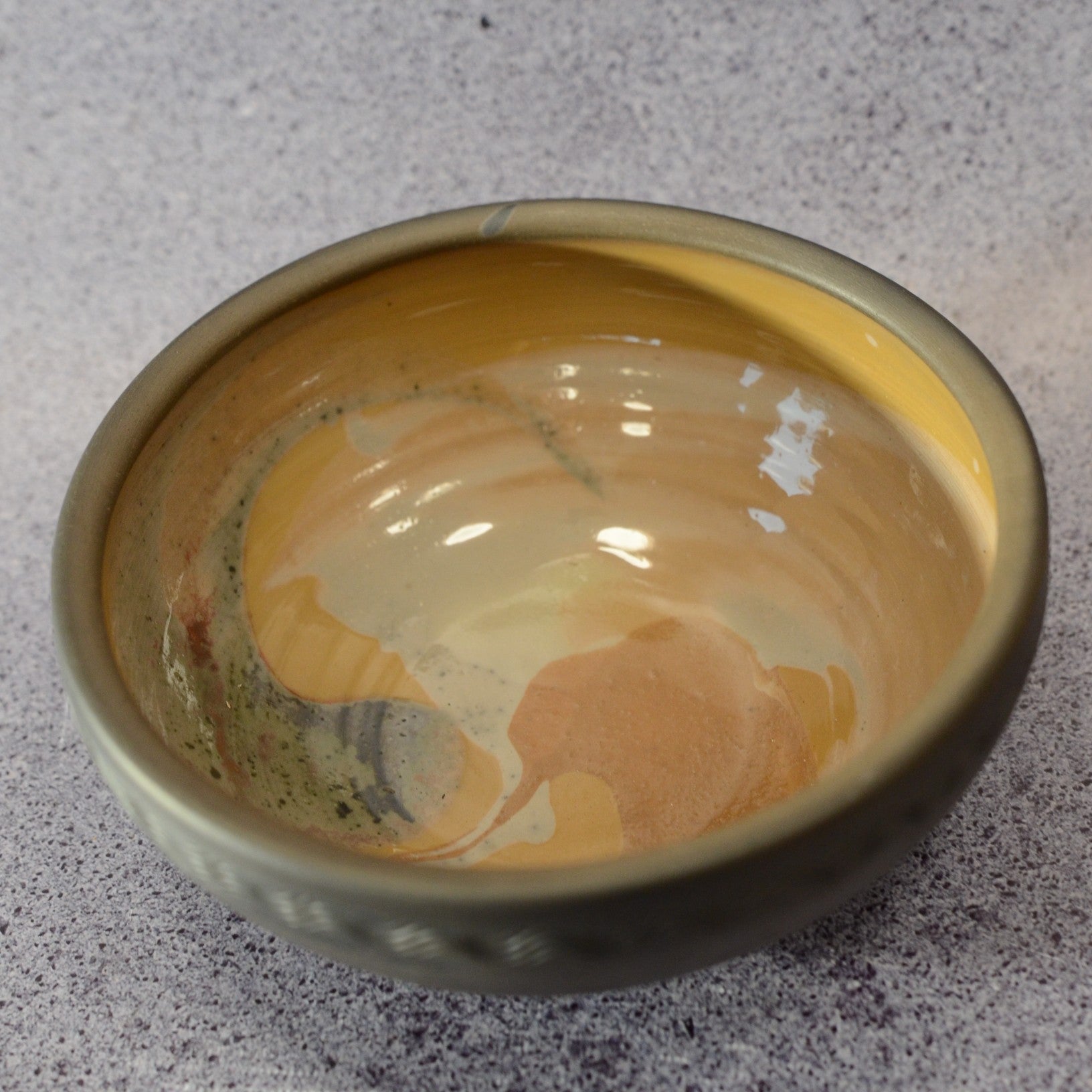 Svēpētā keramika, glazūra. Diametrs 17,5 cm, augstums 7 cm.