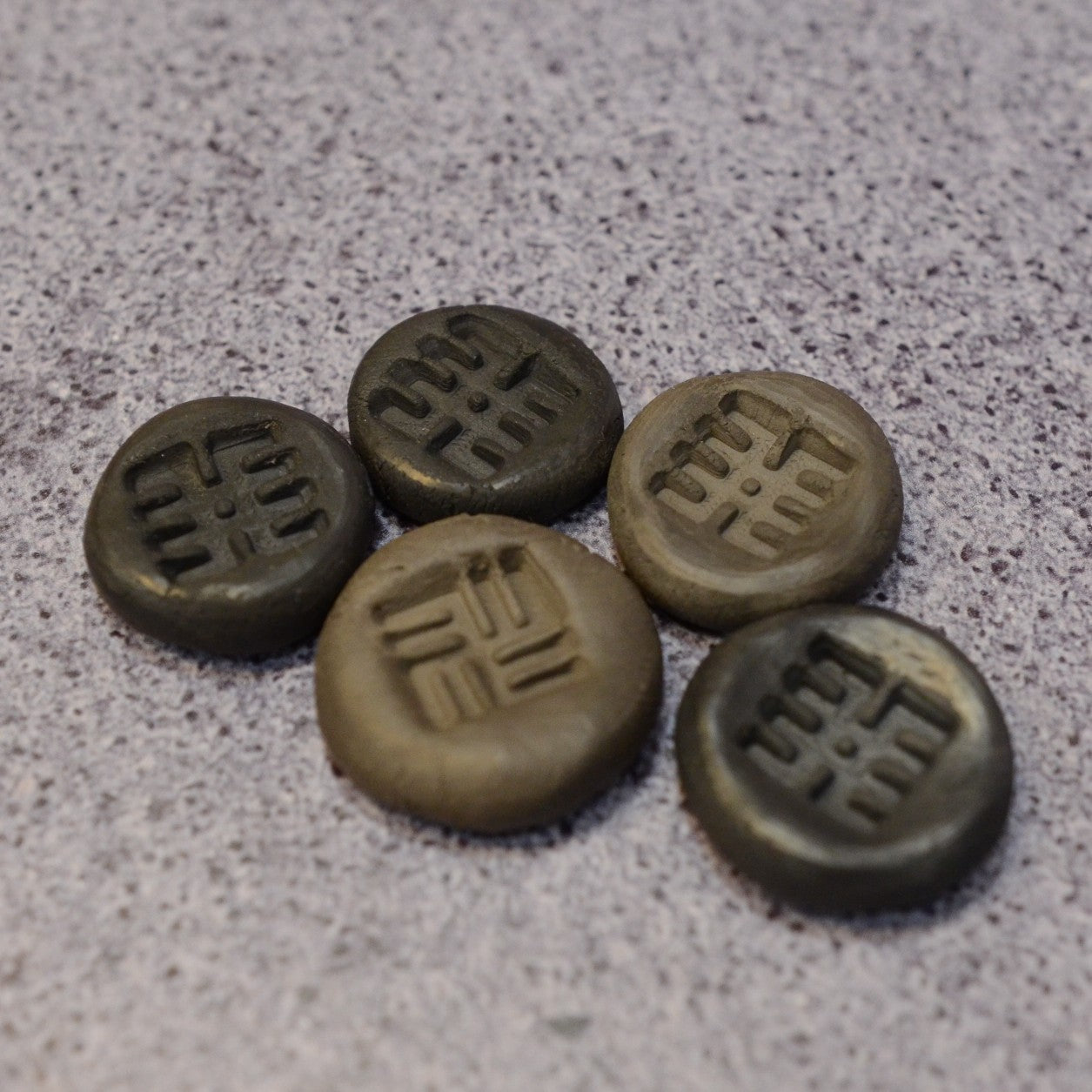 Svēpētā keramika. Diametrs ~2,5 cm.