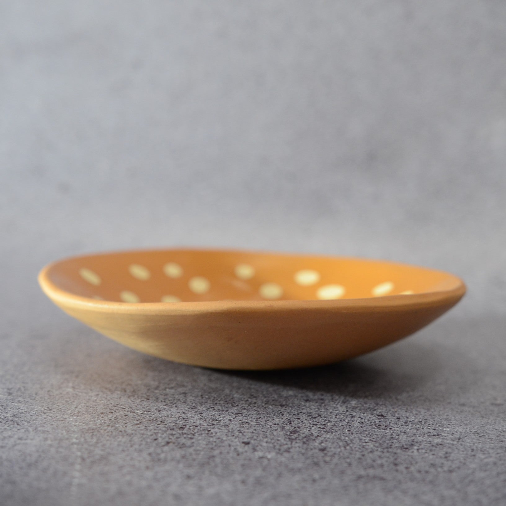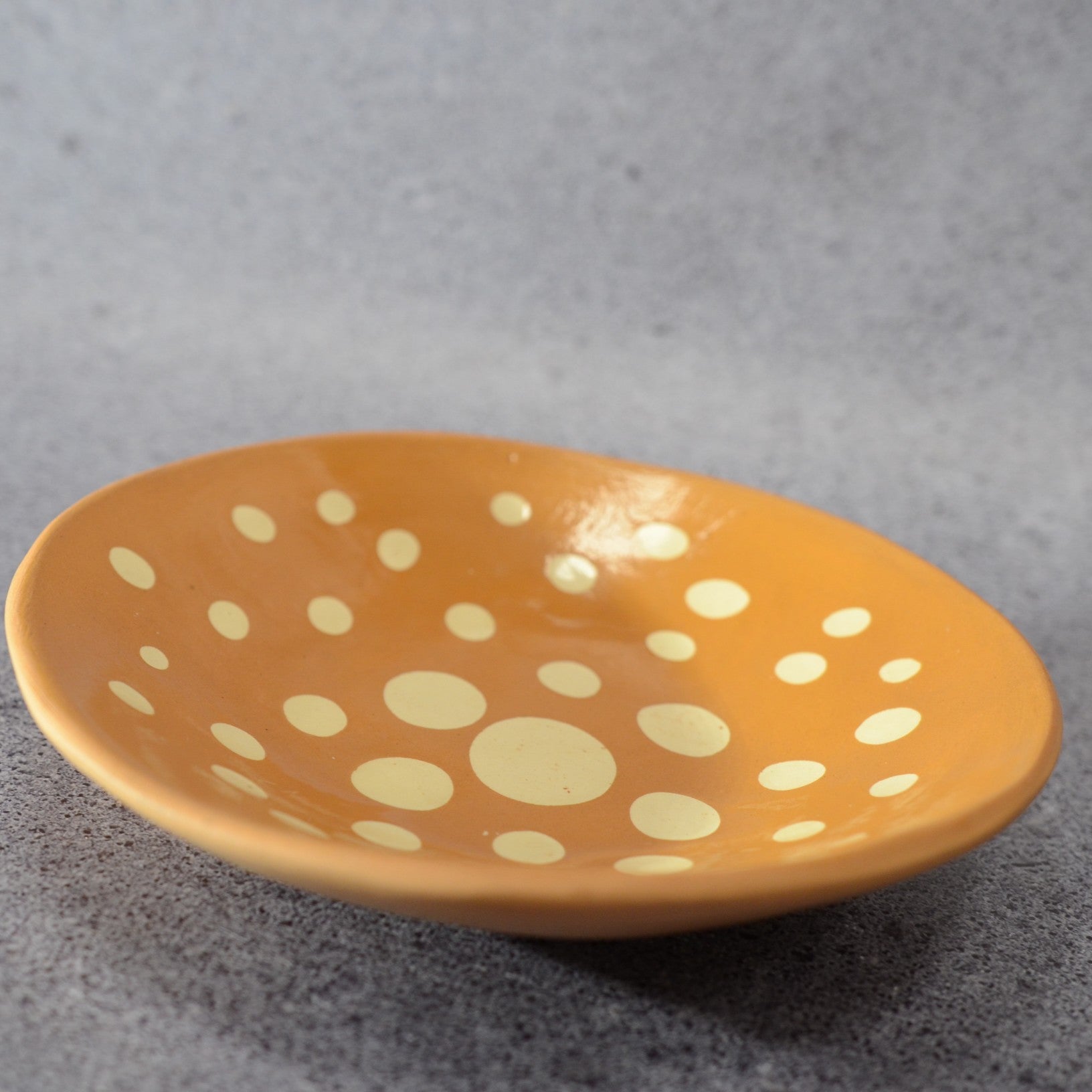 Keramika, glazūra. Diametrs 20 cm, augstums 3,5 cm.